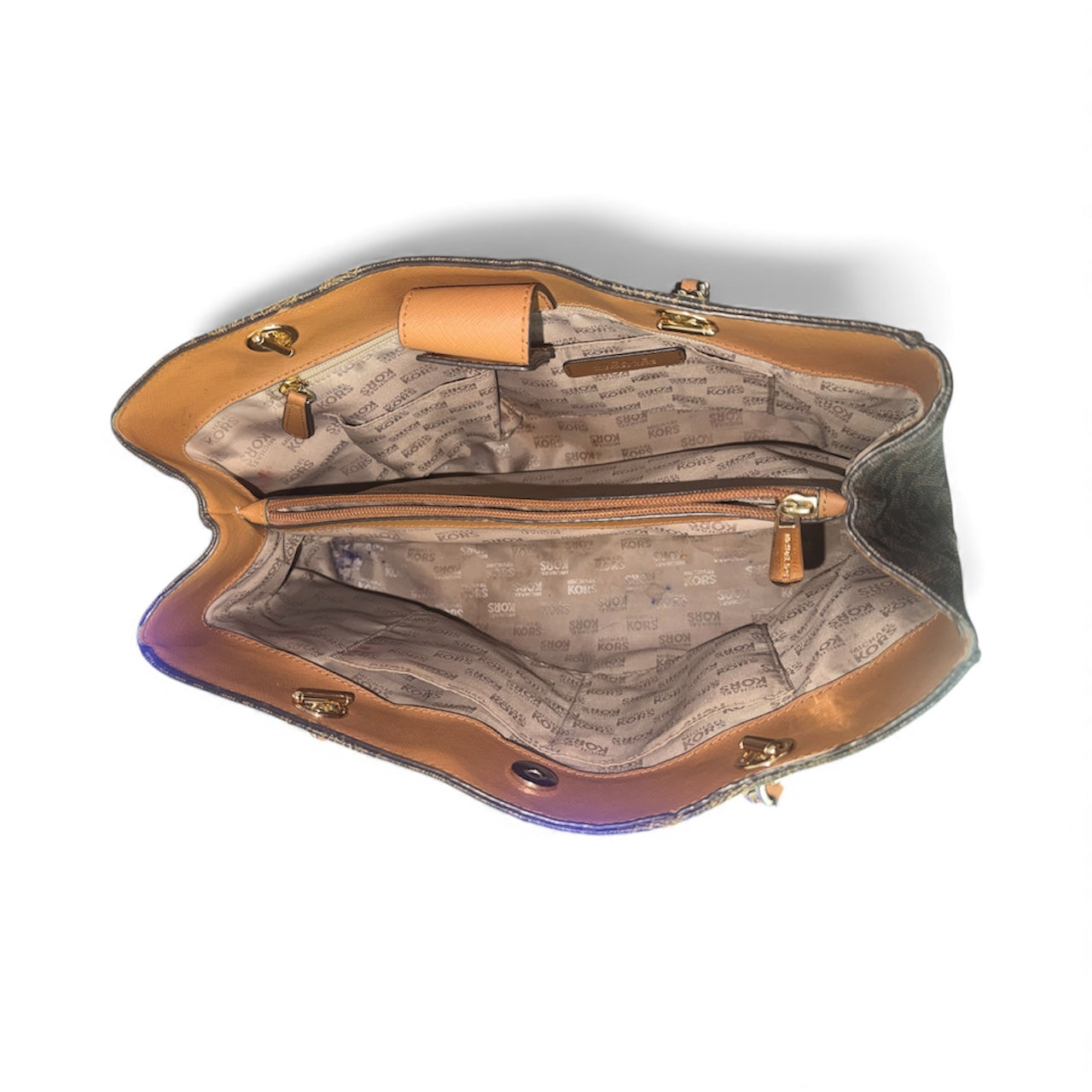 Brown Michael kors Susannah with gold floral print and gold hardware. Excellent Condition